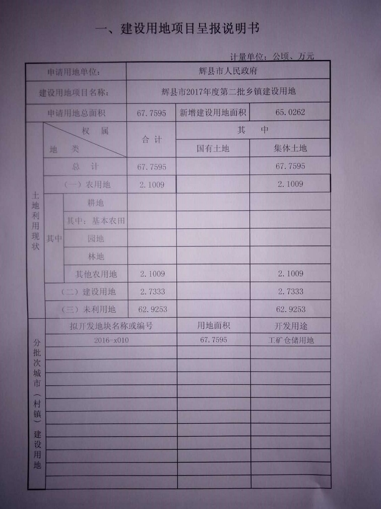 辉县市2017年度第二批乡镇建设用地项目"一书四方案"